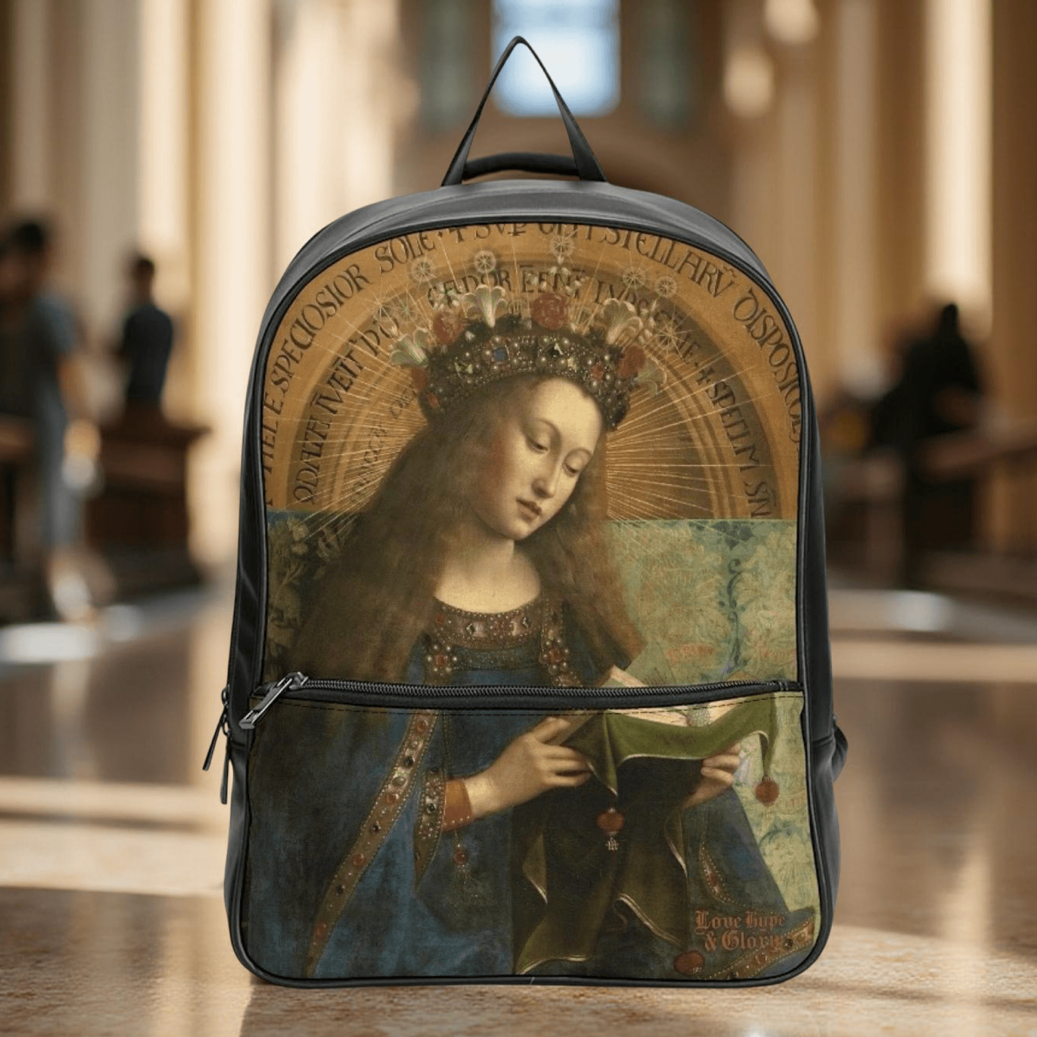 Featuring detail from the iconic Ghent Altarpiece by master painter Jan van Eyck, this statement...